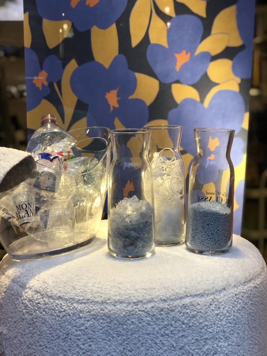 Pouf en tissus 100% recyclé. Tissus réalisé à base de bouteilles en plastiques